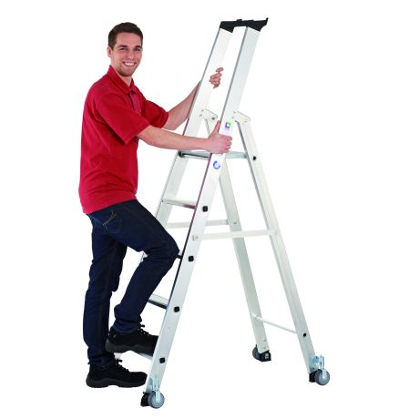 Stehleiter, Aluminium, 6 Stufen mit Rollen, Arbeitshöhe 3500 mm