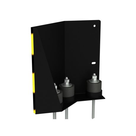 Palettenregal Rammschutz in 135° Ausführung in der Farbe gelb/schwarz des Herstellers NEDCON. Unser intelligenter Rammschutz bietet durch seine intelligente Form und der Ausstattung mit drei Gummipuffern den optimalen Schutz vor Anfahrschäden. Dieser Anfahrschutz ist für "links".