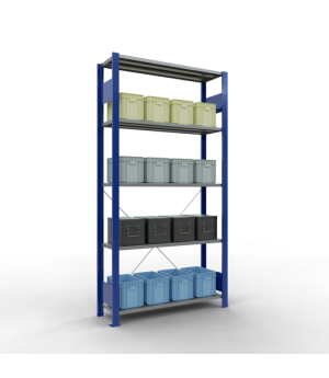 Optik: Das Steckregal ist in verschiedenen Farben erhältlich, darunter verzinkt, RAL 7035 lichtgrau und RAL 5010 enzianblau, was es auch für den Einsatz in Büroräumen geeignet macht.