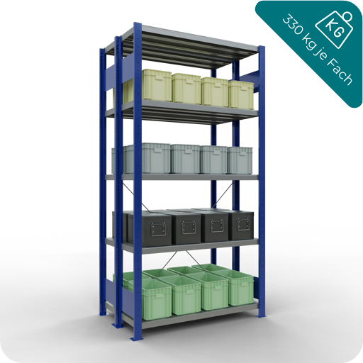Ein Fachbodenregal ist ein Regalsystem mit mehreren horizontalen Regalböden, die in vertikale Rahmen eingehängt werden. Es ist eine flexible und vielseitige Lagerlösung, die in verschiedenen Größen und Materialien erhältlich ist und in fast jeder Umgebung eingesetzt werden kann.