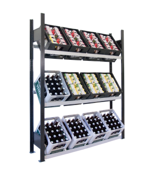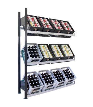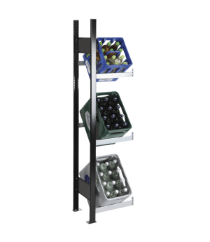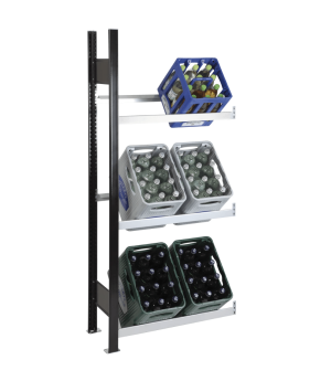 Unser Getränkekistenregal wird in Form von Grundregalen und Anbauregalen geliefert. Das Grundregal bildet dabei den Anfang Ihres Regalsystems. Es ist ein freistehendes Regal, das eigenständig genutzt werden kann. Wenn Sie jedoch eine größere Lagerfläche benötigen, können Sie jederzeit ein Anbauregal hinzufügen. Das Anbauregal wird einfach an das Grundregal angeschlossen und erweitert die Lagerfläche.