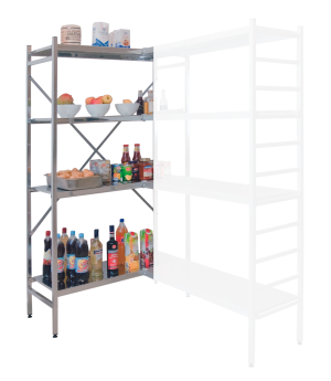Schwerlastregal für Lebensmittel Grundregal 1950x800x400 mm, Edelstahl, 4 Fachböden á 150 kg, Feldlast 1.200 kg1.155,14 €Inkl. 19% Steuern