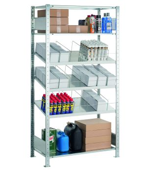 Schrägbodenregal Grundregal 2000x1000x600 mm, verzinkt/RAL 7035 lichtgrau, 150 kg Fachlast, 3 Fachböden230,86 €Inkl. 19% Steuern