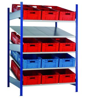 Schrägbodenregal Grundregal XL MULTIplus150, 2000x1300x1200 mm, RAL 5010 enzianblau/verzinkt, 2x5 Fachböden685,62 €Inkl. 19% Steuern