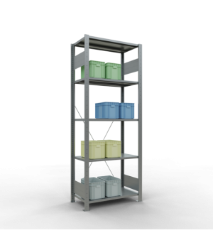 Die Aussteifung der einseitig nutzbaren Steckregale erfolgt durch Kreuzstreben. Diese geben den Steckregalen Stabilität durch Einspannen in die Regalrückseiten. Vorteile sind unter anderem das einfache Ausrichten des Regals durch Spannschlösser an den Kreuzstreben und ist eine ideale Lösung zum Aufbau von Regalzeilen vor Wänden. Das Steckregal mit Kreuzstreben ist die preiswerte Aussteifungsvariante der Fachbodenregale Stecksysteme.