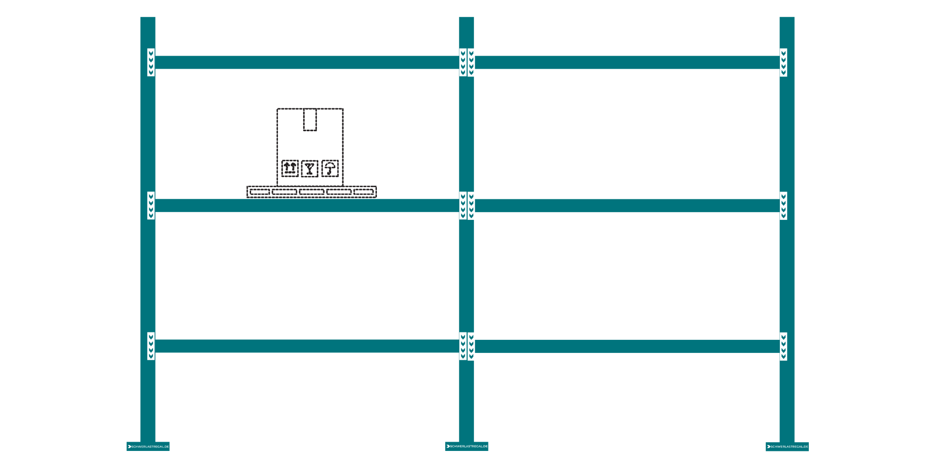 Das Einzelgewicht variiert auch hier wieder zwischen den einzelnen Schwerlastregalen: Palettenregale: Ab 200 kg Fachbodenregale: Ab 30 kg Weitspannregale ab 100 kg