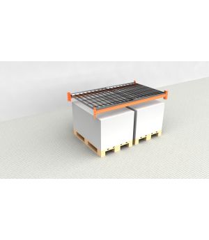 Zusatzebene ohne Extra Auflagen (keine Böden): Eine Zusatzebene ohne extra Auflagen ist eine einfache Möglichkeit, um die Lagerkapazität eines Palettenregals zu erhöhen. Es handelt sich hierbei lediglich um zwei NEDCON Traversen, welche in das bestehende Palettenregal eingehängt werden. Dadurch entsteht eine zusätzliche Lagerfläche im Palettenregal. Da es sich hierbei um eine sehr einfache Variante handelt, ist diese Art der Zusatzebenen in der Regel auch die günstigste. Jedoch ist es nicht möglich kleine Gegegnstände einzulagern, da es ausschließlich für Paletten gedacht ist.