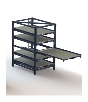 Ein Schubladen Auszugregal ist ein unverzichtbarer Bestandteil eines jeden Lagers. Vor allem wenn es darum geht, Stückgut und Kleinteile platzsparend zu lagern. Unsere Schubladen Auszugsregale sind die perfekte Ergänzung zu Ihrem Palettenregal und bieten Ihnen eine platzsparende Lagerung von Kleinteilen. Das Lochraster in den Pfosten ermöglicht es Ihnen, die Höhe zwischen den Schubflächen individuell zu bestimmen. Die Flächen sind an die EU-Palettenmaße angepasst und lassen sich bequem bestücken. Durch den 100%igen Auszug der Fachböden können Sie alle Teile problemlos erreichen.