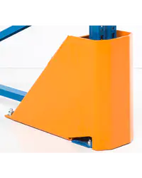 Flankenschutz in 90°-Ausführung benötigt man, um die Kopfseiten einer Palettenregal-Einzelzeile oder Doppelzeile vor Schäden durch Gabelstapler zu schützen. Sie werden mit M12- und M16-Bodenankern am Boden fixiert und sorgen für absoluten Schutz.