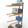 Das SCHULTE Palettenregal besteht aus einem sogenannten Grund- / Anbauregal-Set und besitzt 3 Traversenebenen, welche jeweils eine Fachlast von 2580 kg tragen können.