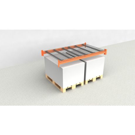 Palettenregal Zusatzebene des Herstellers NEDCON Lagertechnik GmbH. Die hier angebotene Zusatzebene in den Abmessungen 1.825x1.100 (BxT) kann mit bis zu 3.800 kg belastet werden. Dies entspricht 1.900 kg je Europalette. Bei dem Traversentyp handelt es sich um das Modell CC1104015A, welcher in der Farbe RAL 2008 (hellrotorange) pulverbeschichtet ist.