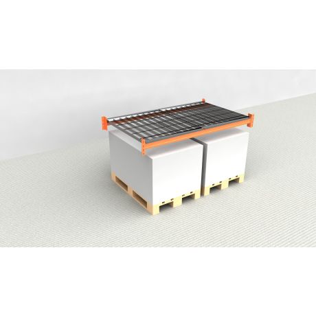 Palettenregal Zusatzebene des Herstellers NEDCON Lagertechnik GmbH. Die hier angebotene Zusatzebene in den Abmessungen 1.825x1.100 (BxT) kann mit bis zu 3.800 kg belastet werden. Dies entspricht 1.900 kg je Europalette. Bei dem Traversentyp handelt es sich um das Modell CC1104015A, welcher in der Farbe RAL 2008 (hellrotorange) pulverbeschichtet ist.