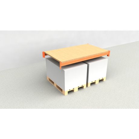 Palettenregal Zusatzebene des Herstellers NEDCON Lagertechnik GmbH. Die hier angebotene Zusatzebene in den Abmessungen 1.825x1.100 (BxT) kann mit bis zu 3.800 kg belastet werden. Dies entspricht 1.900 kg je Europalette. Bei dem Traversentyp handelt es sich um das Modell CC1104015A, welcher in der Farbe RAL 2008 (hellrotorange) pulverbeschichtet ist.
