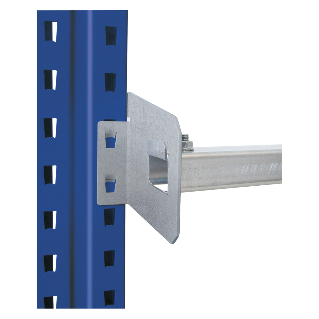 Die Tiefenauflage bietet eine sichere Aufnahme von Paletten bei sowohl Querlagerung als auch Längseinlagerung. Dieses Palettenregal-Zubehör für Schwerlastlagerung sorgt für zusätzliche Stabilität und verhindert das Verrutschen der Paletten.