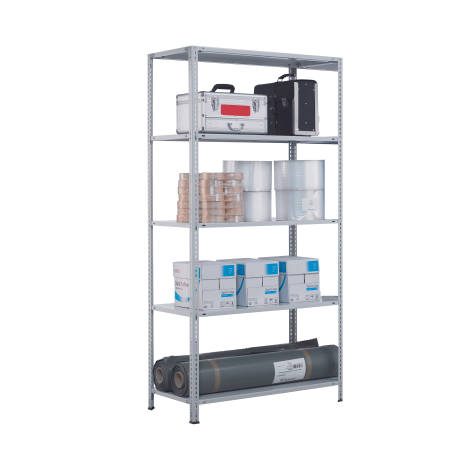 Schraubregale sind die wohl bekanntesten Regaltypen, welche im gewerblichen und privaten Einsatz genutzt werden. Das hier angebotene Schraubregal Grundregal mit der Artikelnummer 31750 wird in 2000 mm Höhe, 1000 mm Breite und 500 mm Tiefe geliefert. Das Schraubregal ist mit 5 Fachebenen ausgestattet und kann je Ebene mit 85 kg belastet werden. Um die langfristige Nutzung zu gewährleisten sind die Bauteile in der Farbe RAL 7035 lichtgrau.