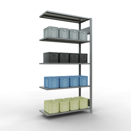 Falls Sie in dem hier angebotenen Schwerlastregal Anbauregal mehr als 5 Fachebenen benötigen, finden Sie weiter untenstehend die passenden Zusatzebenen.
