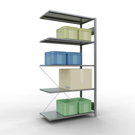 Falls Sie in dem hier angebotenen Schwerlastregal Anbauregal mehr als 5 Fachebenen benötigen, finden Sie weiter untenstehend die passenden Zusatzebenen.