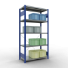 Schwerlastregal vom Markenhersteller SCHULTE Lagertechnik. Das Schwerlastregal vom Typ MULTIplus ist das wohl bekannteste Steckregal auf dem deutschen Markt und wird oftmals, in Lagern, an Produktionslinien, in Archiven, oder auch in privaten Haushalten verwendet. Das hier angebotene Schwerlastregal Anbauregal mit der Artikelnummer 12955-B wird in 2000 mm Höhe, 1000 mm Breite und 500 mm Tiefe geliefert. Es ist mit 5 Fachebenen ausgestattet und kann je Ebene mit 250 kg belastet werden. Um die langfristige Nutzung zu gewährleisten sind die Bauteile in der Farbe RAL 5010 enzianblau/verzinkt. Das Schwerlastregal ist für die Einseitige Bedienung ausgelegt.