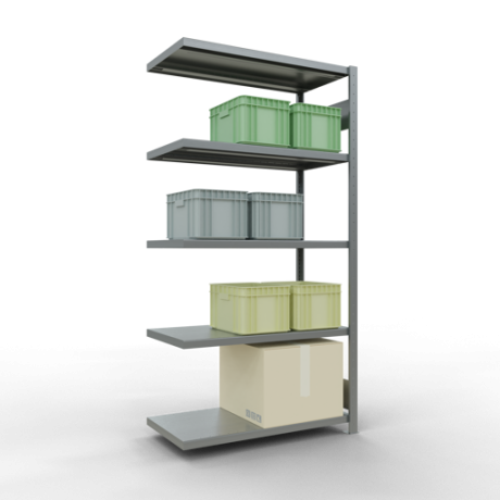 Falls Sie in dem hier angebotenen Schwerlastregal Anbauregal mehr als 5 Fachebenen benötigen, finden Sie weiter untenstehend die passenden Zusatzebenen.