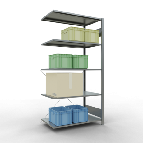 Falls Sie in dem hier angebotenen Schwerlastregal Anbauregal mehr als 5 Fachebenen benötigen, finden Sie weiter untenstehend die passenden Zusatzebenen.