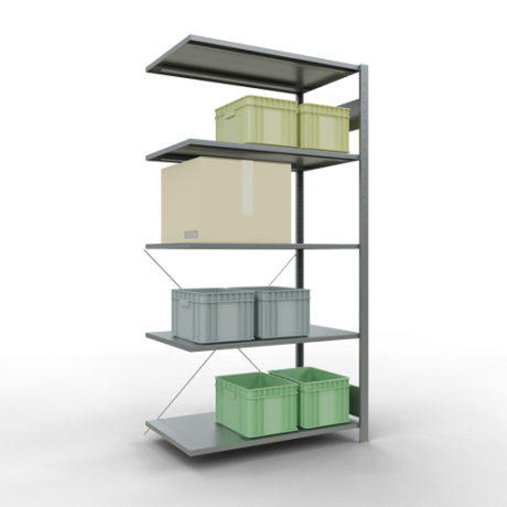 Falls Sie in dem hier angebotenen Schwerlastregal Anbauregal mehr als 5 Fachebenen benötigen, finden Sie weiter untenstehend die passenden Zusatzebenen.