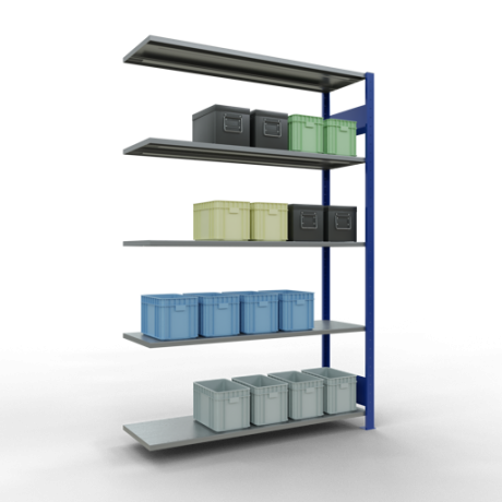 Schwerlastregal vom Markenhersteller SCHULTE Lagertechnik. Das Schwerlastregal vom Typ MULTIplus ist das wohl bekannteste Steckregal auf dem deutschen Markt und wird oftmals, in Lagern, an Produktionslinien, in Archiven, oder auch in privaten Haushalten verwendet. Das hier angebotene Schwerlastregal Anbauregal mit der Artikelnummer 12745-130-LR-B-M wird in 2000 mm Höhe, 1300 mm Breite und 400 mm Tiefe geliefert. Es ist mit 5 Fachebenen ausgestattet und kann je Ebene mit 150 kg belastet werden. Um die langfristige Nutzung zu gewährleisten sind die Bauteile in der Farbe RAL 5010 enzianblau/verzinkt. Das Schwerlastregal ist für die Beidseitige Bedienung ausgelegt.