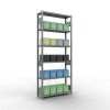 Die einzelnen Fachböden können im Raster von 25 mm in der Höhe verstellt werden. Sollte die angegebene, gleichmäßig verteilte Fachlast i.H.v. 330 kg je Fach nicht ausreichen, können Sie die Fachböden mit Verstärkungsunterzügen ausstatten und so die Tragkraft erhöhen. Bitte beachten Sie dabei allerdings die maximal zulässige Feldlast.