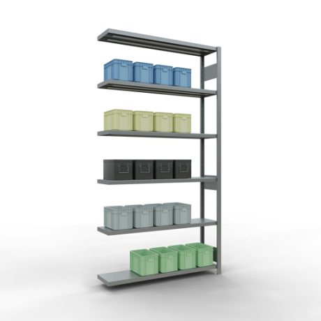 Falls Sie in dem hier angebotenen Schwerlastregal Anbauregal mehr als 6 Fachebenen benötigen, finden Sie weiter untenstehend die passenden Zusatzebenen.