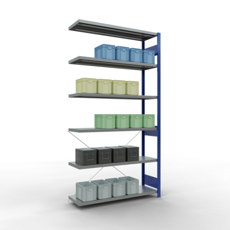 Falls Sie in dem hier angebotenen Schwerlastregal Anbauregal mehr als 6 Fachebenen benötigen, finden Sie weiter untenstehend die passenden Zusatzebenen.