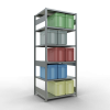 Die einzelnen Fachböden können im Raster von 25 mm in der Höhe verstellt werden. Sollte die angegebene, gleichmäßig verteilte Fachlast i.H.v. 250 kg je Fach nicht ausreichen, können Sie die Fachböden mit Verstärkungsunterzügen ausstatten und so die Tragkraft erhöhen. Bitte beachten Sie dabei allerdings die maximal zulässige Feldlast.