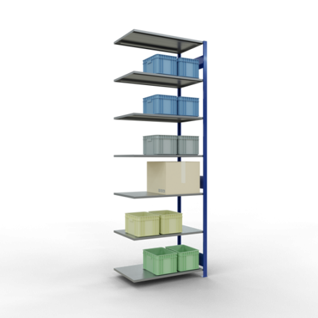 Schwerlastregal vom Markenhersteller SCHULTE Lagertechnik. Das Schwerlastregal vom Typ MULTIplus ist das wohl bekannteste Steckregal auf dem deutschen Markt und wird oftmals, in Lagern, an Produktionslinien, in Archiven, oder auch in privaten Haushalten verwendet. Das hier angebotene Schwerlastregal Anbauregal mit der Artikelnummer 13167-LR-B wird in 3000 mm Höhe, 1000 mm Breite und 600 mm Tiefe geliefert. Es ist mit 7 Fachebenen ausgestattet und kann je Ebene mit 85 kg belastet werden. Um die langfristige Nutzung zu gewährleisten sind die Bauteile in der Farbe RAL 5010 enzianblau/verzinkt. Das Schwerlastregal ist für die Beidseitige Bedienung ausgelegt.