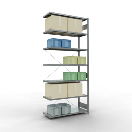 Falls Sie in dem hier angebotenen Schwerlastregal Anbauregal mehr als 7 Fachebenen benötigen, finden Sie weiter untenstehend die passenden Zusatzebenen.