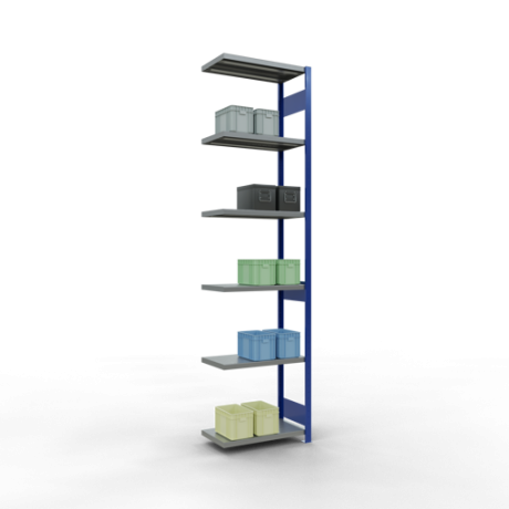 Schwerlastregal vom Markenhersteller SCHULTE Lagertechnik. Das Schwerlastregal vom Typ MULTIplus ist das wohl bekannteste Steckregal auf dem deutschen Markt und wird oftmals, in Lagern, an Produktionslinien, in Archiven, oder auch in privaten Haushalten verwendet. Das hier angebotene Schwerlastregal Anbauregal mit der Artikelnummer 12947-75-LR-B wird in 3000 mm Höhe, 750 mm Breite und 400 mm Tiefe geliefert. Es ist mit 7 Fachebenen ausgestattet und kann je Ebene mit 250 kg belastet werden. Um die langfristige Nutzung zu gewährleisten sind die Bauteile in der Farbe RAL 5010 enzianblau/verzinkt. Das Schwerlastregal ist für die Beidseitige Bedienung ausgelegt.