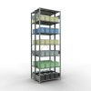 Die einzelnen Fachböden können im Raster von 25 mm in der Höhe verstellt werden. Sollte die angegebene, gleichmäßig verteilte Fachlast i.H.v. 150 kg je Fach nicht ausreichen, können Sie die Fachböden mit Verstärkungsunterzügen ausstatten und so die Tragkraft erhöhen. Bitte beachten Sie dabei allerdings die maximal zulässige Feldlast.