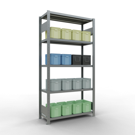 Schwerlastregal vom Markenhersteller SCHULTE Lagertechnik. Das Schwerlastregal vom Typ MULTIplus ist das wohl bekannteste Steckregal auf dem deutschen Markt und wird oftmals, in Lagern, an Produktionslinien, in Archiven, oder auch in privaten Haushalten verwendet. Das hier angebotene Schwerlastregal Grundregal mit der Artikelnummer 12940-LR wird in 2000 mm Höhe, 1000 mm Breite und 400 mm Tiefe geliefert. Es ist mit 5 Fachebenen ausgestattet und kann je Ebene mit 250 kg belastet werden. Um die langfristige Nutzung zu gewährleisten sind die Bauteile in der Farbe verzinkt. Das Schwerlastregal ist für die Beidseitige Bedienung ausgelegt.