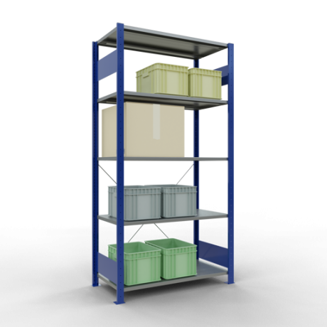 Schwerlastregal vom Markenhersteller SCHULTE Lagertechnik. Das Schwerlastregal vom Typ MULTIplus ist das wohl bekannteste Steckregal auf dem deutschen Markt und wird oftmals, in Lagern, an Produktionslinien, in Archiven, oder auch in privaten Haushalten verwendet. Das hier angebotene Schwerlastregal Grundregal mit der Artikelnummer 12650-B-M wird in 2000 mm Höhe, 1000 mm Breite und 500 mm Tiefe geliefert. Es ist mit 5 Fachebenen ausgestattet und kann je Ebene mit 150 kg belastet werden. Um die langfristige Nutzung zu gewährleisten sind die Bauteile in der Farbe RAL 5010 enzianblau/verzinkt. Das Schwerlastregal ist für die Einseitige Bedienung ausgelegt.