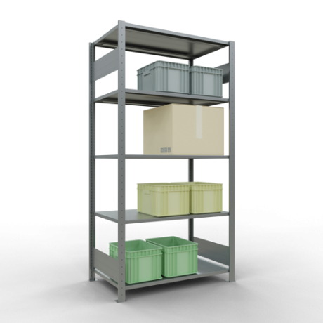 Die einzelnen Fachböden können im Raster von 25 mm in der Höhe verstellt werden. Sollte die angegebene, gleichmäßig verteilte Fachlast i.H.v. 85 kg je Fach nicht ausreichen, können Sie die Fachböden mit Verstärkungsunterzügen ausstatten und so die Tragkraft erhöhen. Bitte beachten Sie dabei allerdings die maximal zulässige Feldlast.