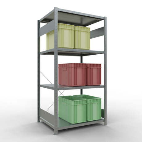 Die einzelnen Fachböden können im Raster von 25 mm in der Höhe verstellt werden. Sollte die angegebene, gleichmäßig verteilte Fachlast i.H.v. 330 kg je Fach nicht ausreichen, können Sie die Fachböden mit Verstärkungsunterzügen ausstatten und so die Tragkraft erhöhen. Bitte beachten Sie dabei allerdings die maximal zulässige Feldlast.