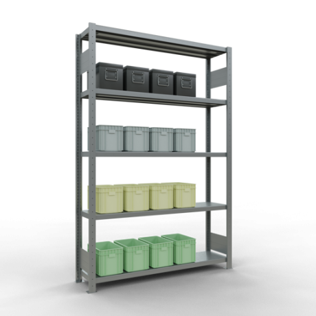 Schwerlastregal vom Markenhersteller SCHULTE Lagertechnik. Das Schwerlastregal vom Typ MULTIplus ist das wohl bekannteste Steckregal auf dem deutschen Markt und wird oftmals, in Lagern, an Produktionslinien, in Archiven, oder auch in privaten Haushalten verwendet. Das hier angebotene Schwerlastregal Grundregal mit der Artikelnummer 12930-130-LR wird in 2000 mm Höhe, 1300 mm Breite und 300 mm Tiefe geliefert. Es ist mit 5 Fachebenen ausgestattet und kann je Ebene mit 250 kg belastet werden. Um die langfristige Nutzung zu gewährleisten sind die Bauteile in der Farbe verzinkt. Das Schwerlastregal ist für die Beidseitige Bedienung ausgelegt.