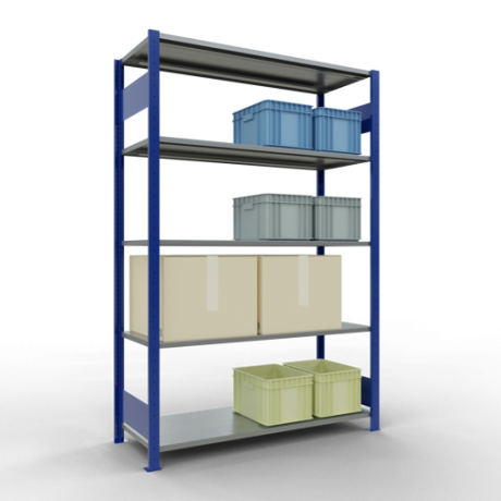 Schwerlastregal vom Markenhersteller SCHULTE Lagertechnik. Das Schwerlastregal vom Typ MULTIplus ist das wohl bekannteste Steckregal auf dem deutschen Markt und wird oftmals, in Lagern, an Produktionslinien, in Archiven, oder auch in privaten Haushalten verwendet. Das hier angebotene Schwerlastregal Grundregal mit der Artikelnummer 12750-130-LR-B-M wird in 2000 mm Höhe, 1300 mm Breite und 500 mm Tiefe geliefert. Es ist mit 5 Fachebenen ausgestattet und kann je Ebene mit 150 kg belastet werden. Um die langfristige Nutzung zu gewährleisten sind die Bauteile in der Farbe RAL 5010 enzianblau/verzinkt. Das Schwerlastregal ist für die Beidseitige Bedienung ausgelegt.