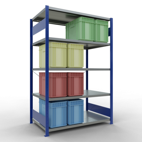 Schwerlastregal vom Markenhersteller SCHULTE Lagertechnik. Das Schwerlastregal vom Typ MULTIplus ist das wohl bekannteste Steckregal auf dem deutschen Markt und wird oftmals, in Lagern, an Produktionslinien, in Archiven, oder auch in privaten Haushalten verwendet. Das hier angebotene Schwerlastregal Grundregal mit der Artikelnummer 12980-130-B wird in 2000 mm Höhe, 1300 mm Breite und 800 mm Tiefe geliefert. Es ist mit 5 Fachebenen ausgestattet und kann je Ebene mit 250 kg belastet werden. Um die langfristige Nutzung zu gewährleisten sind die Bauteile in der Farbe RAL 5010 enzianblau/verzinkt. Das Schwerlastregal ist für die Einseitige Bedienung ausgelegt.
