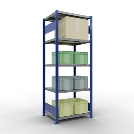 Schwerlastregal vom Markenhersteller SCHULTE Lagertechnik. Das Schwerlastregal vom Typ MULTIplus ist das wohl bekannteste Steckregal auf dem deutschen Markt und wird oftmals, in Lagern, an Produktionslinien, in Archiven, oder auch in privaten Haushalten verwendet. Das hier angebotene Schwerlastregal Grundregal mit der Artikelnummer 12960-75-LR-B-M wird in 2000 mm Höhe, 750 mm Breite und 600 mm Tiefe geliefert. Es ist mit 5 Fachebenen ausgestattet und kann je Ebene mit 250 kg belastet werden. Um die langfristige Nutzung zu gewährleisten sind die Bauteile in der Farbe RAL 5010 enzianblau/verzinkt. Das Schwerlastregal ist für die Beidseitige Bedienung ausgelegt.