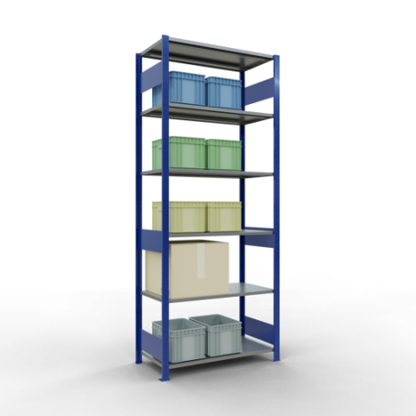 Schwerlastregal vom Markenhersteller SCHULTE Lagertechnik. Das Schwerlastregal vom Typ MULTIplus ist das wohl bekannteste Steckregal auf dem deutschen Markt und wird oftmals, in Lagern, an Produktionslinien, in Archiven, oder auch in privaten Haushalten verwendet. Das hier angebotene Schwerlastregal Grundregal mit der Artikelnummer 13151-LR-B wird in 2500 mm Höhe, 1000 mm Breite und 500 mm Tiefe geliefert. Es ist mit 6 Fachebenen ausgestattet und kann je Ebene mit 85 kg belastet werden. Um die langfristige Nutzung zu gewährleisten sind die Bauteile in der Farbe RAL 5010 enzianblau/verzinkt. Das Schwerlastregal ist für die Beidseitige Bedienung ausgelegt.