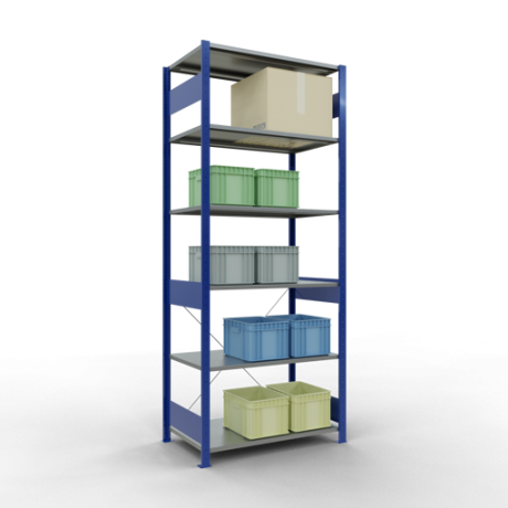 Schwerlastregal vom Markenhersteller SCHULTE Lagertechnik. Das Schwerlastregal vom Typ MULTIplus ist das wohl bekannteste Steckregal auf dem deutschen Markt und wird oftmals, in Lagern, an Produktionslinien, in Archiven, oder auch in privaten Haushalten verwendet. Das hier angebotene Schwerlastregal Grundregal mit der Artikelnummer 12661-B-M wird in 2500 mm Höhe, 1000 mm Breite und 600 mm Tiefe geliefert. Es ist mit 6 Fachebenen ausgestattet und kann je Ebene mit 150 kg belastet werden. Um die langfristige Nutzung zu gewährleisten sind die Bauteile in der Farbe RAL 5010 enzianblau/verzinkt. Das Schwerlastregal ist für die Einseitige Bedienung ausgelegt.