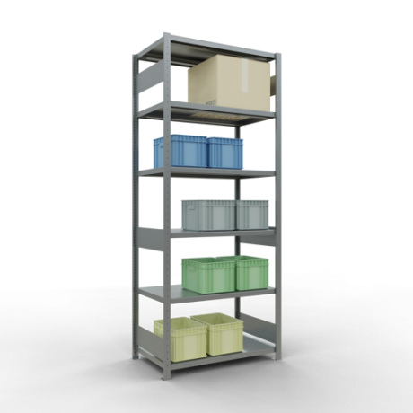 Die einzelnen Fachböden können im Raster von 25 mm in der Höhe verstellt werden. Sollte die angegebene, gleichmäßig verteilte Fachlast i.H.v. 330 kg je Fach nicht ausreichen, können Sie die Fachböden mit Verstärkungsunterzügen ausstatten und so die Tragkraft erhöhen. Bitte beachten Sie dabei allerdings die maximal zulässige Feldlast.