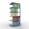 Die einzelnen Fachböden können im Raster von 25 mm in der Höhe verstellt werden. Sollte die angegebene, gleichmäßig verteilte Fachlast i.H.v. 250 kg je Fach nicht ausreichen, können Sie die Fachböden mit Verstärkungsunterzügen ausstatten und so die Tragkraft erhöhen. Bitte beachten Sie dabei allerdings die maximal zulässige Feldlast.