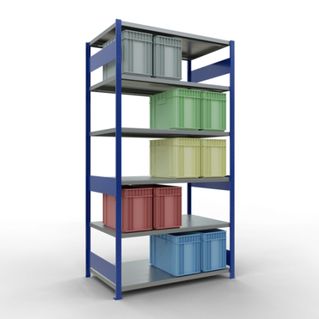 Schwerlastregal vom Markenhersteller SCHULTE Lagertechnik. Das Schwerlastregal vom Typ MULTIplus ist das wohl bekannteste Steckregal auf dem deutschen Markt und wird oftmals, in Lagern, an Produktionslinien, in Archiven, oder auch in privaten Haushalten verwendet. Das hier angebotene Schwerlastregal Grundregal mit der Artikelnummer 12981-130-LR-B wird in 2500 mm Höhe, 1300 mm Breite und 800 mm Tiefe geliefert. Es ist mit 6 Fachebenen ausgestattet und kann je Ebene mit 250 kg belastet werden. Um die langfristige Nutzung zu gewährleisten sind die Bauteile in der Farbe RAL 5010 enzianblau/verzinkt. Das Schwerlastregal ist für die Beidseitige Bedienung ausgelegt.