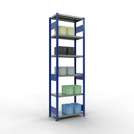 Schwerlastregal vom Markenhersteller SCHULTE Lagertechnik. Das Schwerlastregal vom Typ MULTIplus ist das wohl bekannteste Steckregal auf dem deutschen Markt und wird oftmals, in Lagern, an Produktionslinien, in Archiven, oder auch in privaten Haushalten verwendet. Das hier angebotene Schwerlastregal Grundregal mit der Artikelnummer 12941-75-LR-B-M wird in 2500 mm Höhe, 750 mm Breite und 400 mm Tiefe geliefert. Es ist mit 6 Fachebenen ausgestattet und kann je Ebene mit 250 kg belastet werden. Um die langfristige Nutzung zu gewährleisten sind die Bauteile in der Farbe RAL 5010 enzianblau/verzinkt. Das Schwerlastregal ist für die Beidseitige Bedienung ausgelegt.
