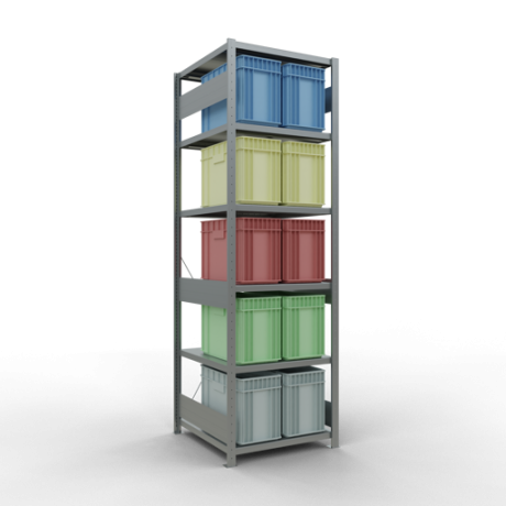 Die einzelnen Fachböden können im Raster von 25 mm in der Höhe verstellt werden. Sollte die angegebene, gleichmäßig verteilte Fachlast i.H.v. 250 kg je Fach nicht ausreichen, können Sie die Fachböden mit Verstärkungsunterzügen ausstatten und so die Tragkraft erhöhen. Bitte beachten Sie dabei allerdings die maximal zulässige Feldlast.