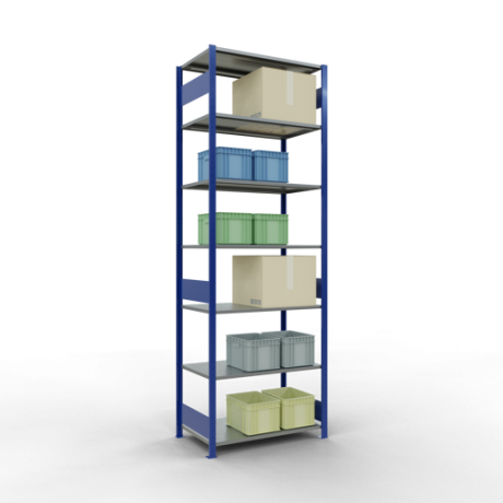 Schwerlastregal vom Markenhersteller SCHULTE Lagertechnik. Das Schwerlastregal vom Typ MULTIplus ist das wohl bekannteste Steckregal auf dem deutschen Markt und wird oftmals, in Lagern, an Produktionslinien, in Archiven, oder auch in privaten Haushalten verwendet. Das hier angebotene Schwerlastregal Grundregal mit der Artikelnummer 13162-LR-B wird in 3000 mm Höhe, 1000 mm Breite und 600 mm Tiefe geliefert. Es ist mit 7 Fachebenen ausgestattet und kann je Ebene mit 85 kg belastet werden. Um die langfristige Nutzung zu gewährleisten sind die Bauteile in der Farbe RAL 5010 enzianblau/verzinkt. Das Schwerlastregal ist für die Beidseitige Bedienung ausgelegt.